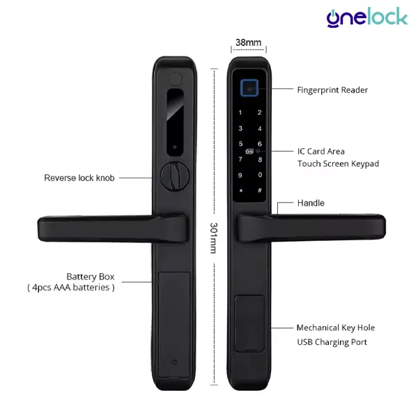 Poignée Biométrique Intégrée : Le capteur d’empreintes digitales est placé naturellement sur la poignée. Votre porte se déverrouille au moment même où vous la saisissez.